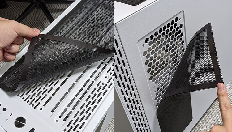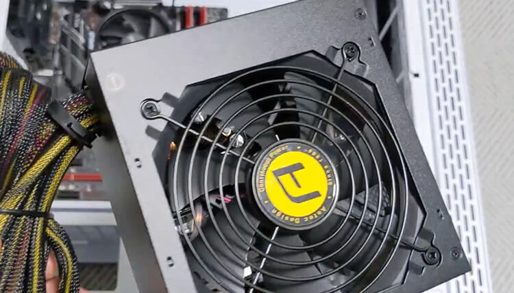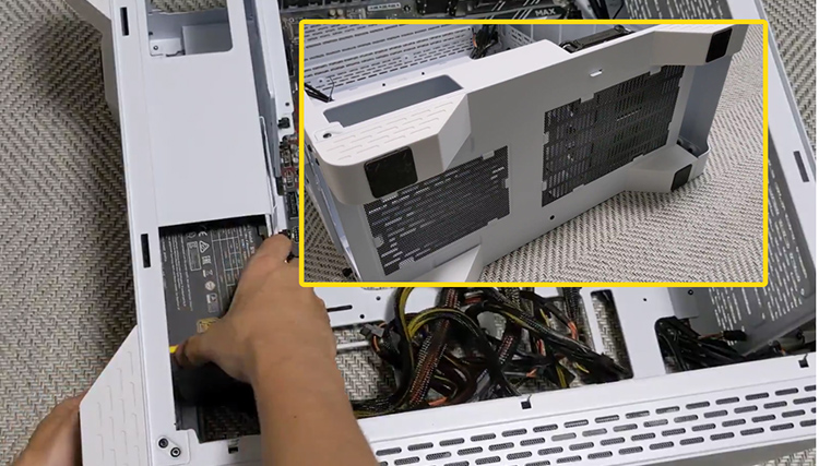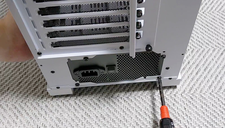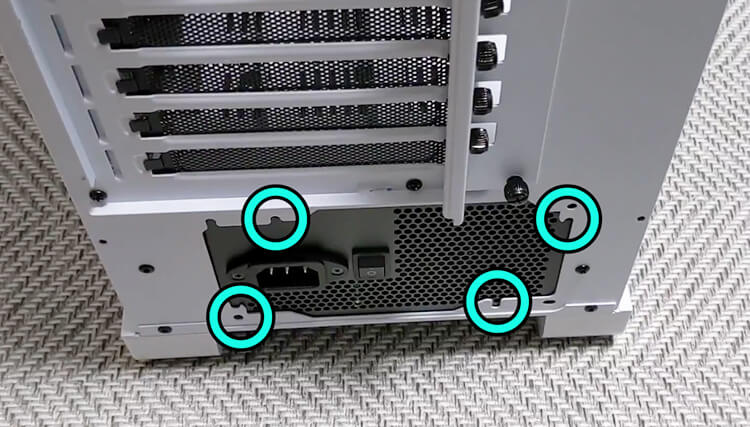 ケースの底がメッシュになっているので電源をファンの向きを下にして入れます。