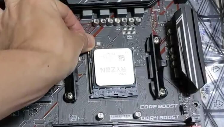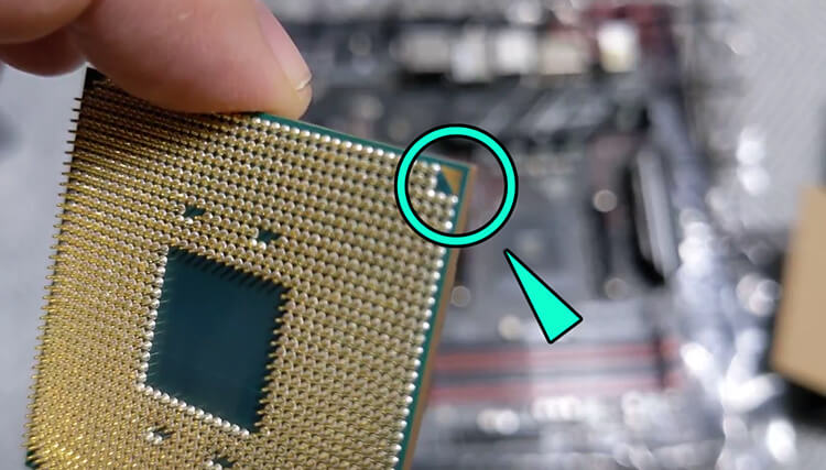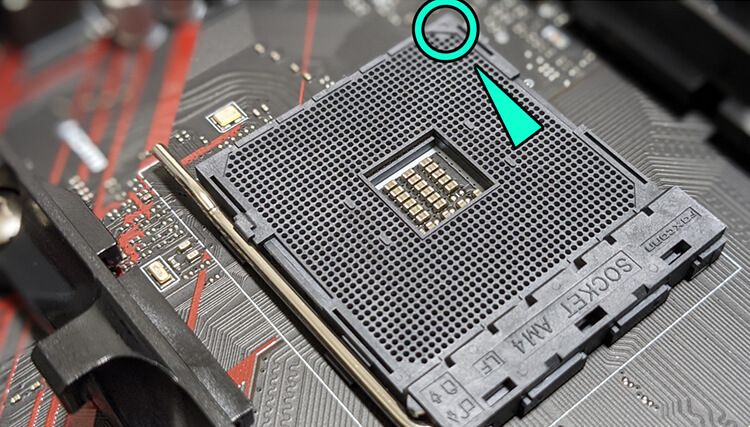 CPUソケット呼ばれる場所に取り付けるのですが、ソケットとCPUに向きを合わせる印が付いています。
