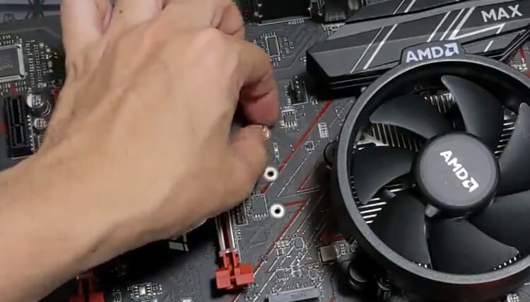 マザーボードはスペーサーと呼ばれるものの上に設置します。