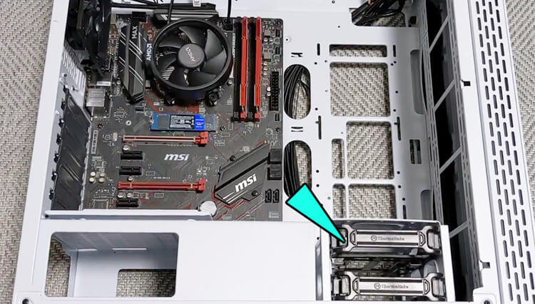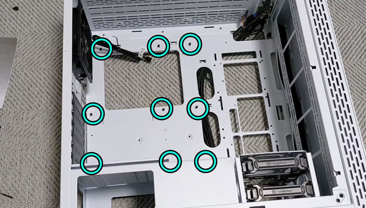 このケースはドライブベイを外さないと取り付けることが出来ませんので外します。