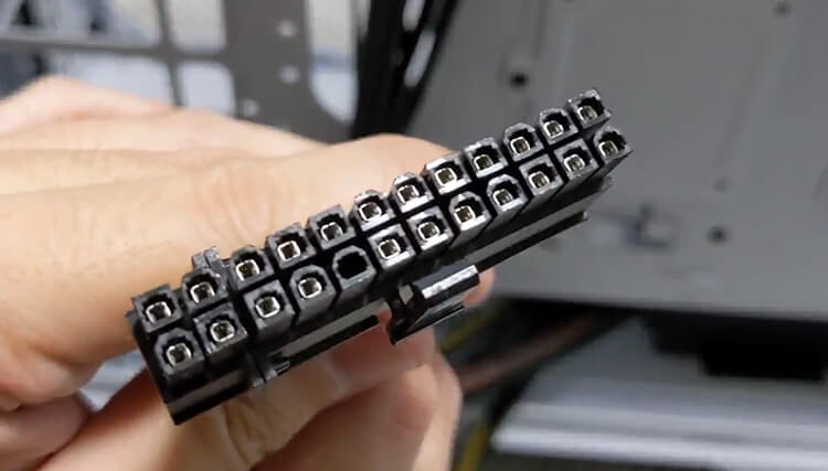 マザーボード用の電源ケーブル24ピンをつなぎます。