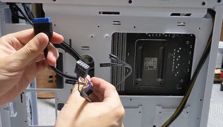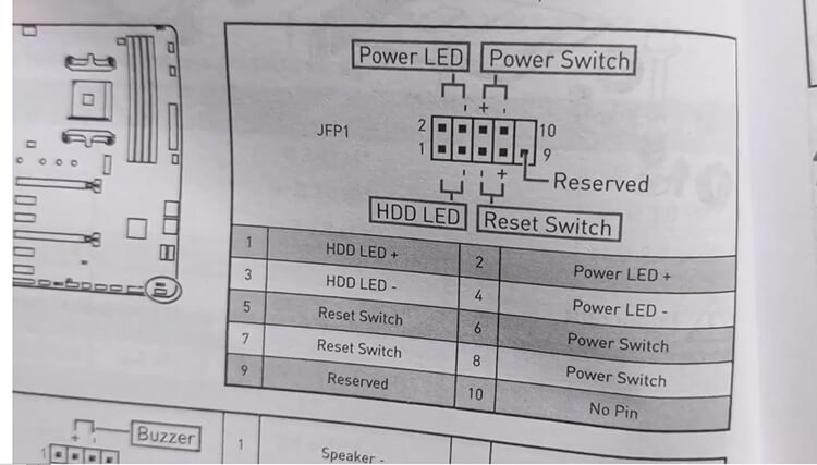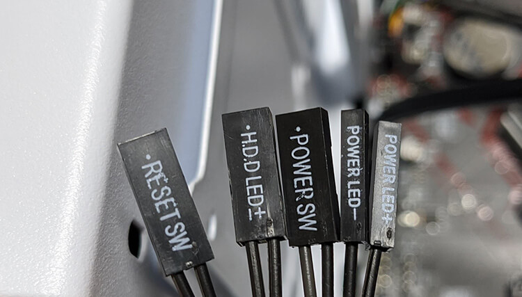 このケーブルはバラバラになっているので、マザーボードの説明書に書いてあるように纏めて挿します。