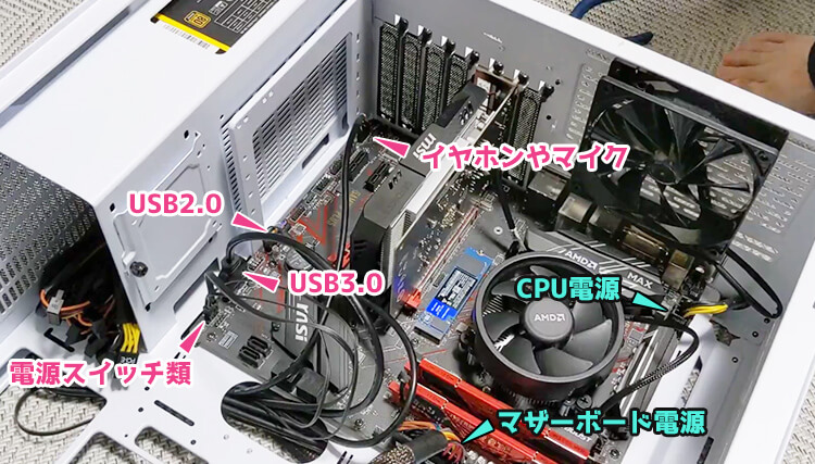 ※マザーボードの規格のよっては位置を変更する必要があります。
