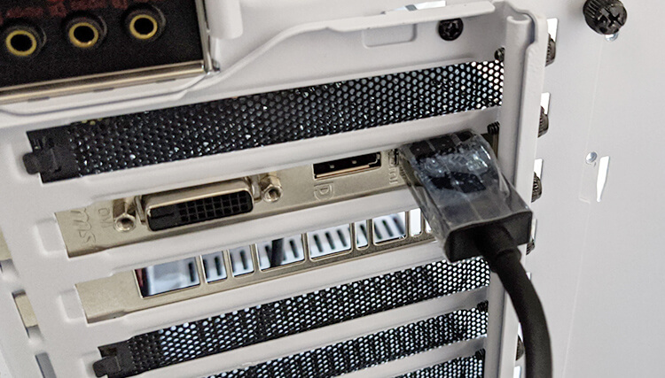 注意点としてHDMIケーブルはマザーボード側の端子に繋いではいけない。