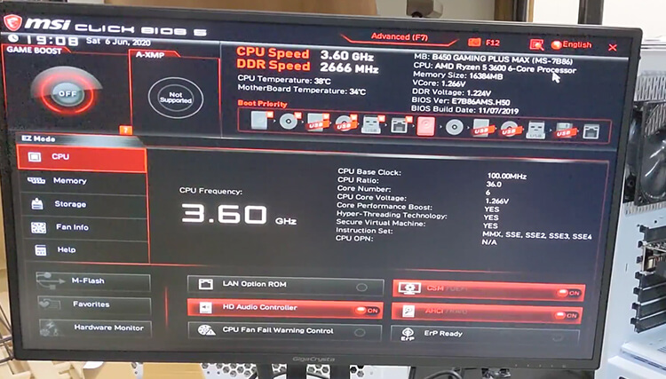 今回はMSIのマザーボードを使用しているので「Del」キーを押しながら起動します。