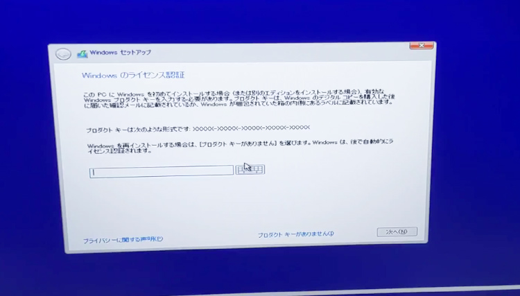 Windowsのインストールはすごく簡単で、インストール用のUSBメモリを挿して電源を入れるだけです。