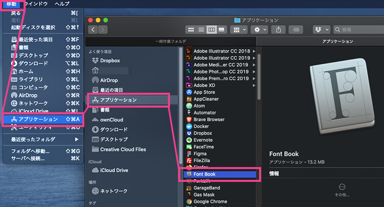 「移動」→「アプリケーション」→「Font Book」