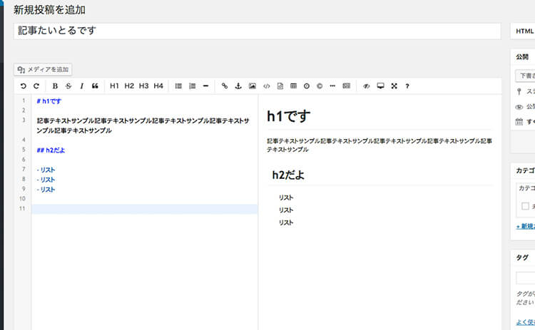 普段からhtmlを触っている方にとってはWordPressでの記事投稿(特にビジュアルエディタ)ってすごく入力しづらくないですか? 僕もそう思っていて、でもhtmlは書きたくないし...かといってビジュアルエディタは使いたくない。 どうしたら快適に入力できるか考えた結果Markdownならいい感じにいけるんじゃないかと思い導入したところ大変快適になりました!