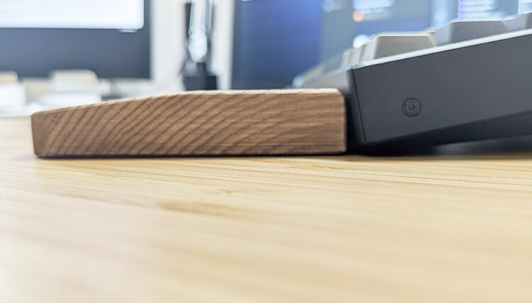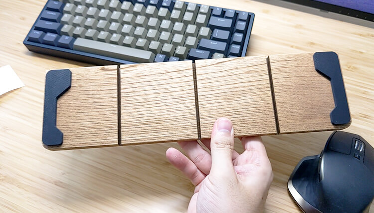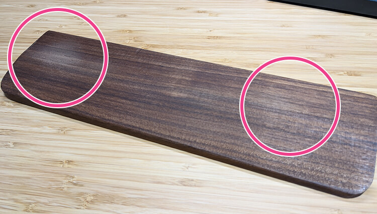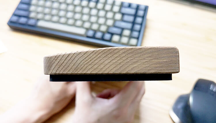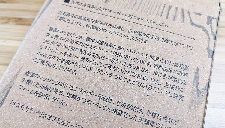 このパームレストは北海道産の高品質な無垢材を使用しているそうです。