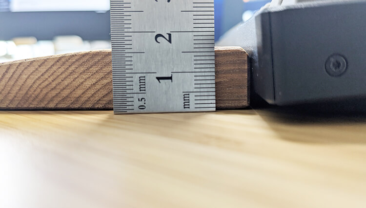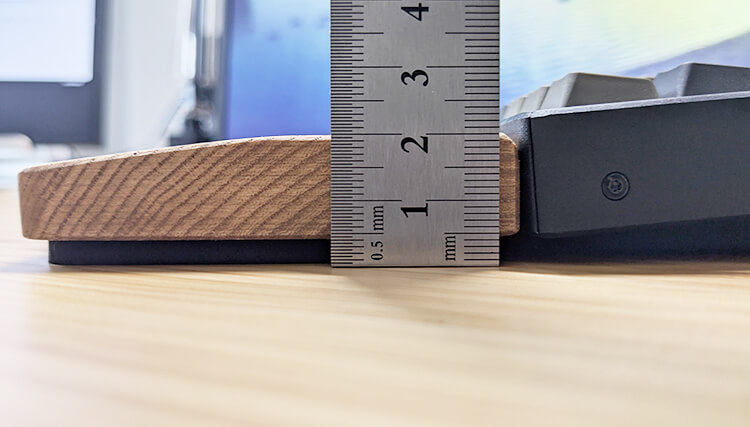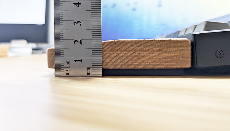 このパームレストは手前に傾斜がついているので手前を奥で高さが違います。