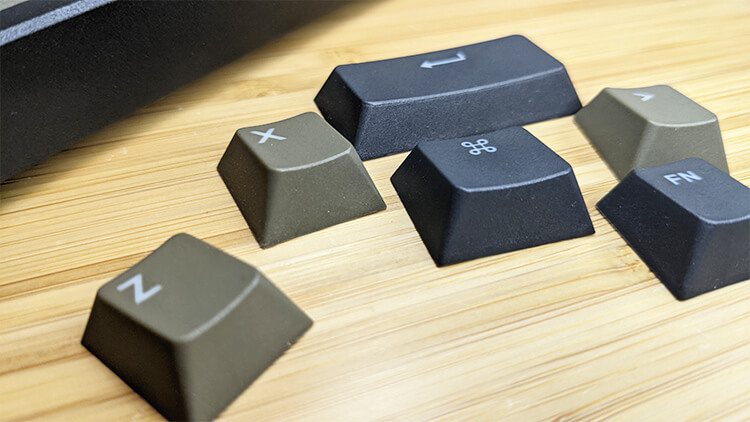 PBT樹脂のキーキャップのキーキャップということもあり、サラサラしていて手触りが非常に良いです。