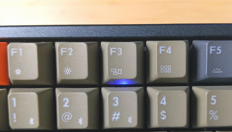 FN + 1,2,3のいずれかのボタンを約3秒押すと接続待機状態になる。