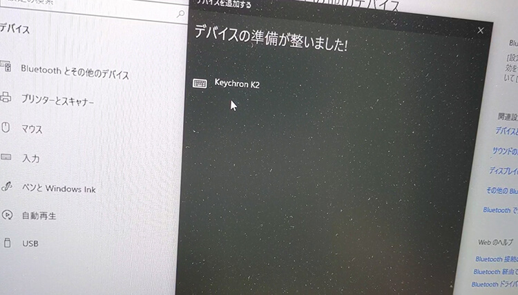 デバイス側にはKeychron K2と表示されているので選択して接続する。