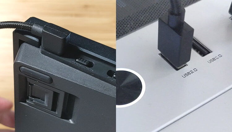 付属しているUSBケーブルでキーボードとPCをつなぐ