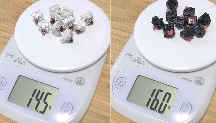 つまり茶軸の時の重さを計っていません。