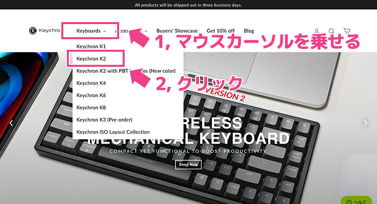 1, Keychron公式サイトにアクセス