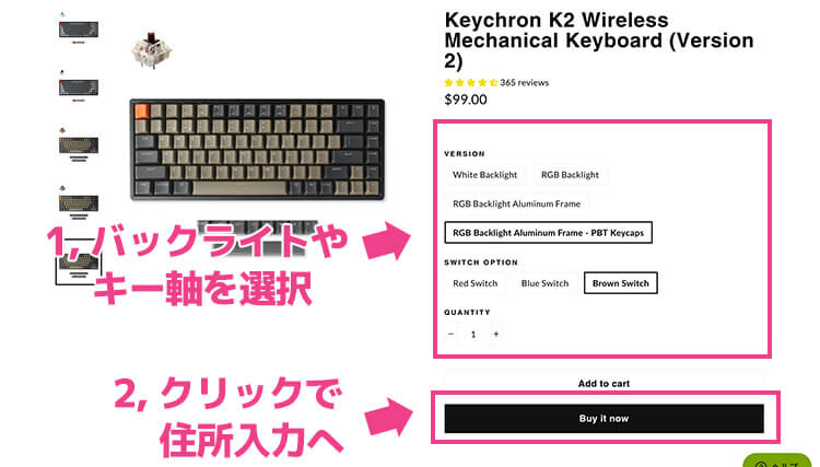 2, キーボードを選び購入画面へ