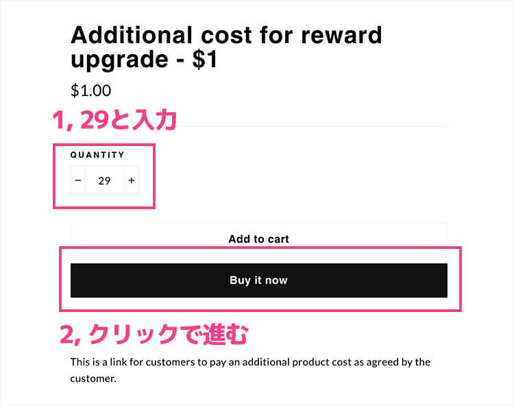 フォームにアクセスして数量の項目を29にして進んでくれ。