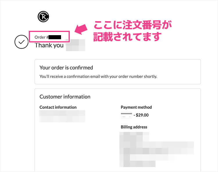 支払い完了画面もしくは支払い完了メールに記載されています。